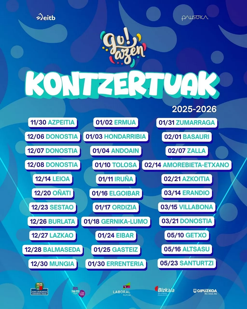 Euskara, musika eta adiskidetasuna oholtza gainean; Go!azen 12ko kontzertu birak, Euskal Herria dantzan jarriko du berriro! Ez galdu bira, behean dituzue data guztiak!