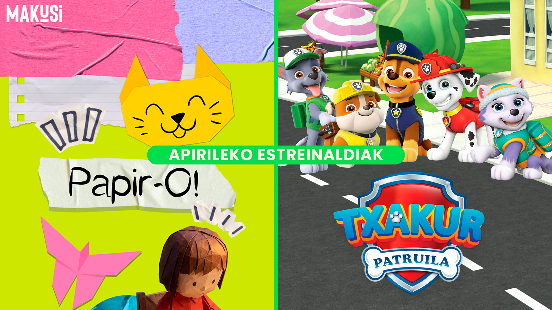 Denbora honetan zehar haur eta gaztetxoentzako euskarazko ikus-entzunezko edukien katalogo zabala osatu du MAKUSIk, etxeko txikientzako pentsatutako ingurune digital seguru eta doako batean. Erabiltzaileen erantzuna paregabea izan da: guztira, 2.265.000 ordu disfrutatu dituzte, euskaraz. Eta, zer ikusi dute gehien gure txikienek? "Go!azen", "Irabazi Arte", "Txakur Patruila", "Dragoi Bola", "Doraemon"; eta, azken aldian, "Pottokiak" bereziki.
